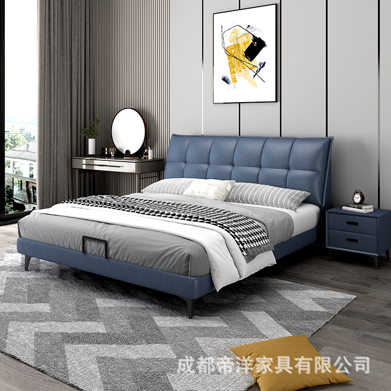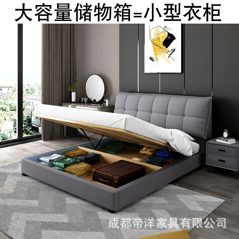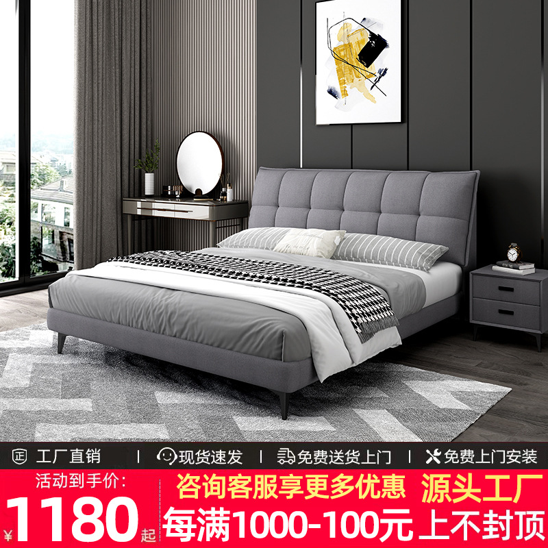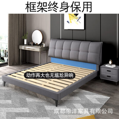 Công nghệ giường vải không cần giặt hiện đại tối giản phòng ngủ giường đôi lưới màu đỏ ánh sáng mới sang trọng giường cưới tối giản lưu trữ giường vải