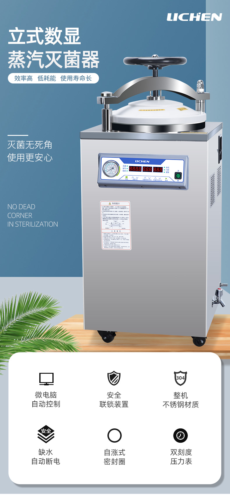 Công nghệ Lichen Máy tiệt trùng đứng tự động máy tiệt trùng hơi nước áp suất cao Máy tiệt trùng áp suất phòng thí nghiệm 50L75L