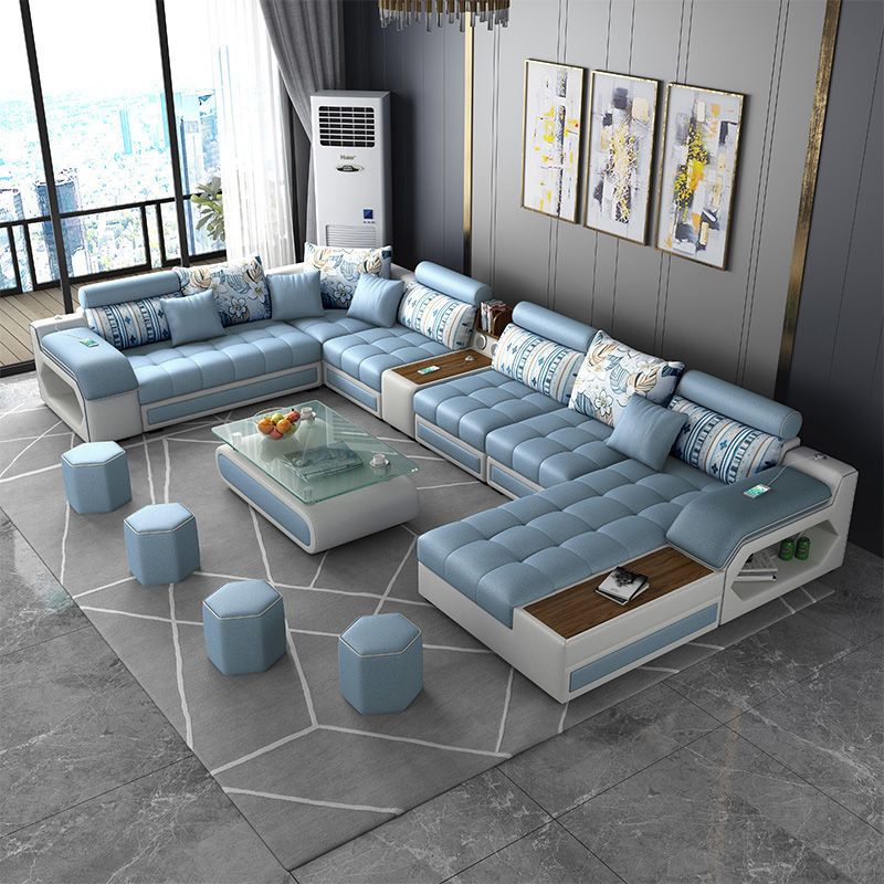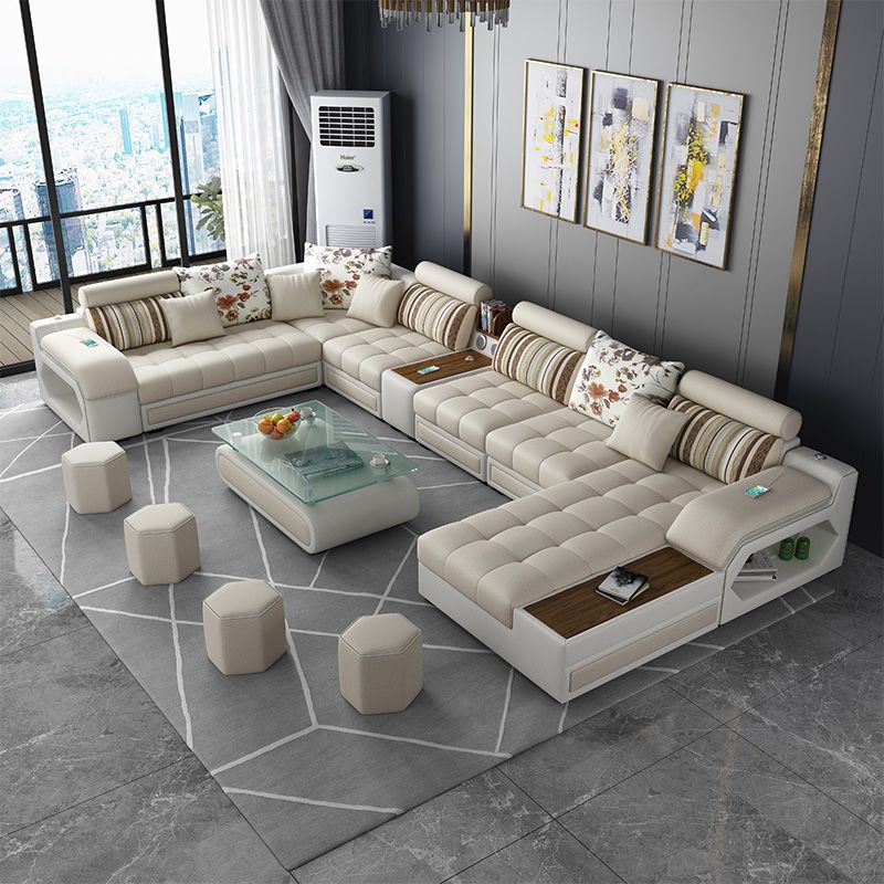Công nghệ sofa vải phòng khách kích thước mới hiện đại đơn giản sofa vải không cần giặt kết hợp bàn cà phê