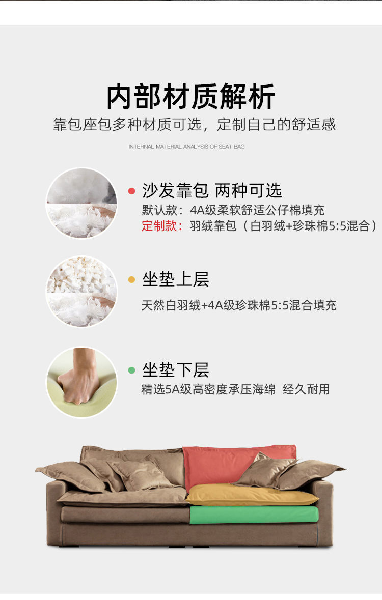 Công nghệ vải bọc sofa vải phòng khách siêu mềm hàng thẳng ba người căn hộ nhỏ xuống ghế lớn sâu phong cách Ý nhẹ nhà sang trọng