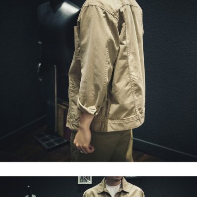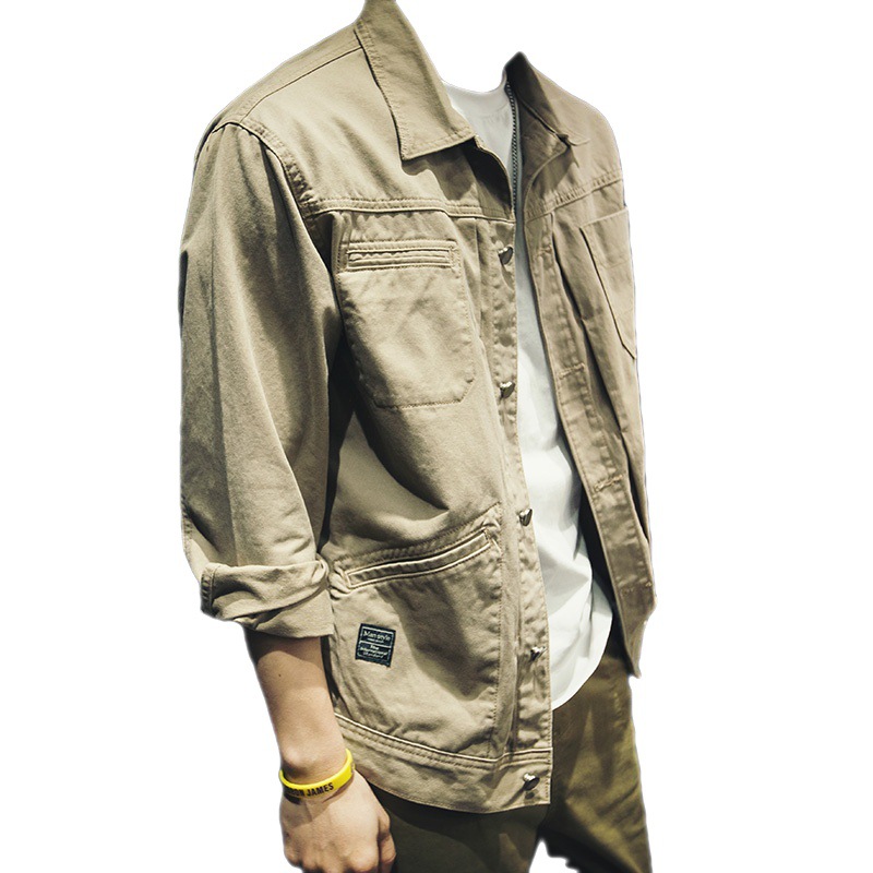 Công nghiệp nặng lên men nặng đã giặt kaki hợp thời trang thương hiệu dụng cụ áo khoác nam rộng mùa xuân hợp thời trang áo khoác nam quần áo
