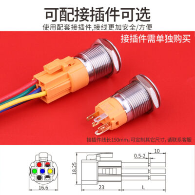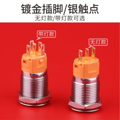 Công tắc nút kim loại thương hiệu Hongsong 16mm tự khóa tự cài đặt lại có đèn 12V 24V 36V