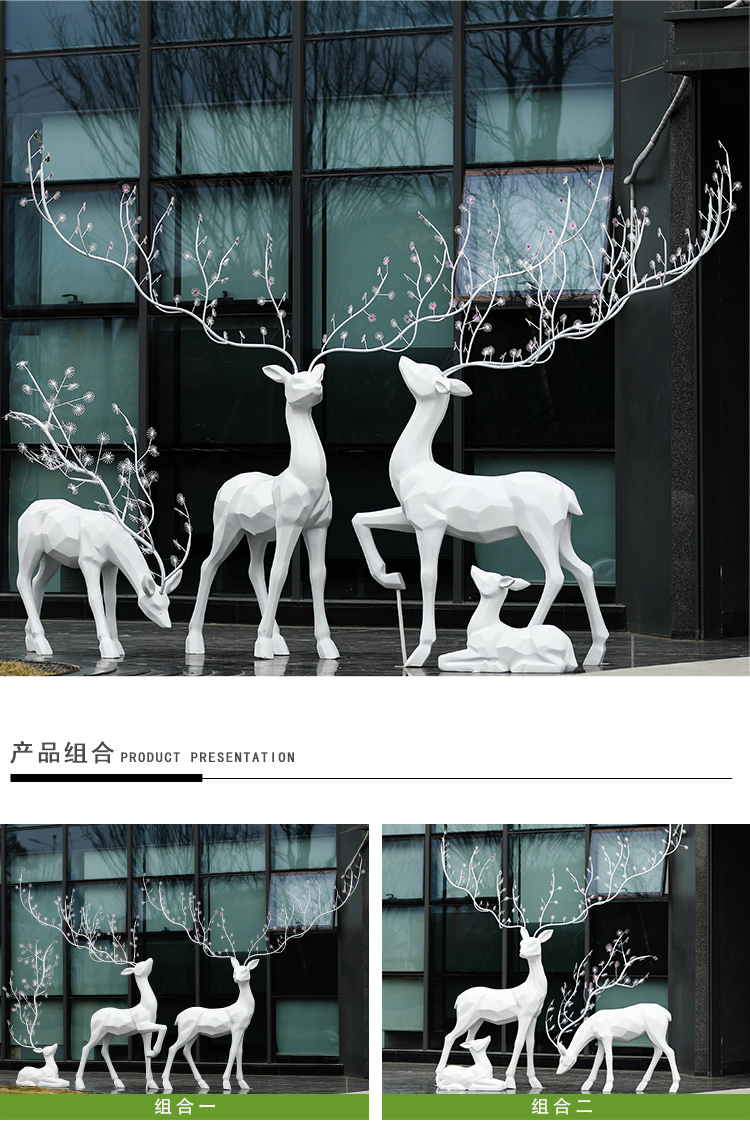 Công viên ngoài trời Cảnh quan rừng sợi thủy tinh Điêu khắc trừu tượng Hình học Deer Cộng đồng Trung tâm mua sắm Trang trí bất động sản Trang trí động vật