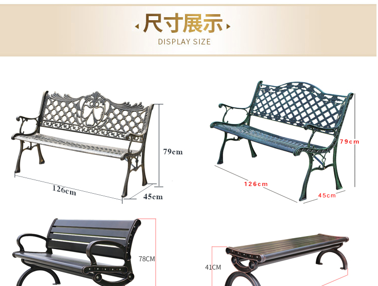 Công viên ngoài trời ghế băng gang đúc nhôm sân ngoài trời ban công vườn đôi thư giãn tựa lưng ghế băng ghế đẩu