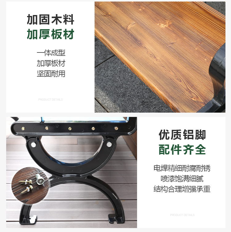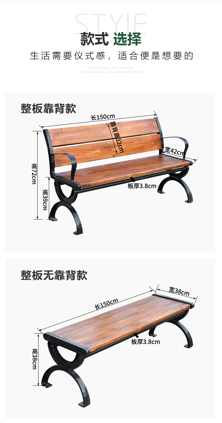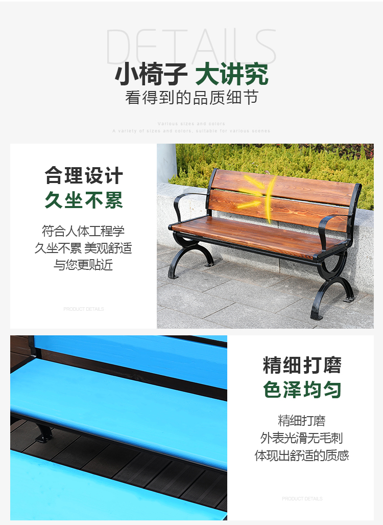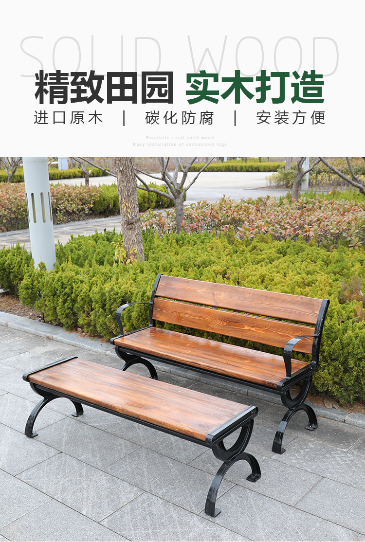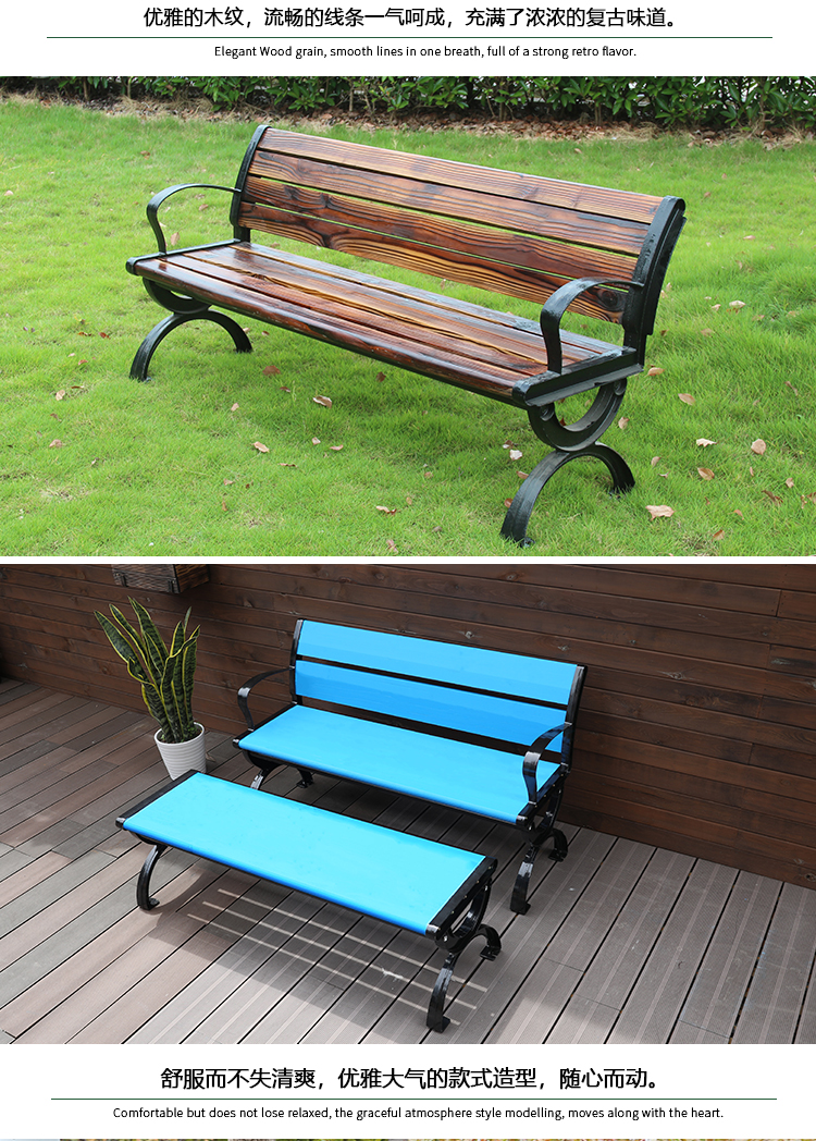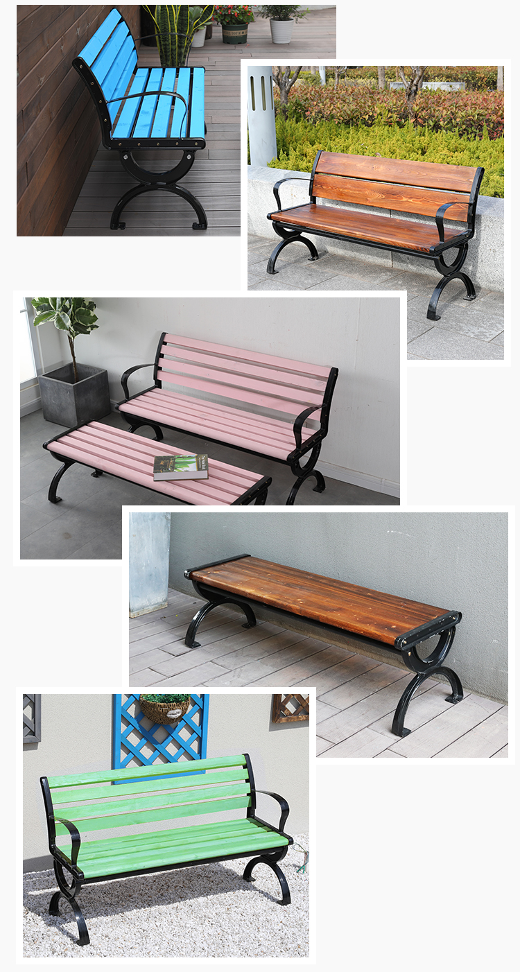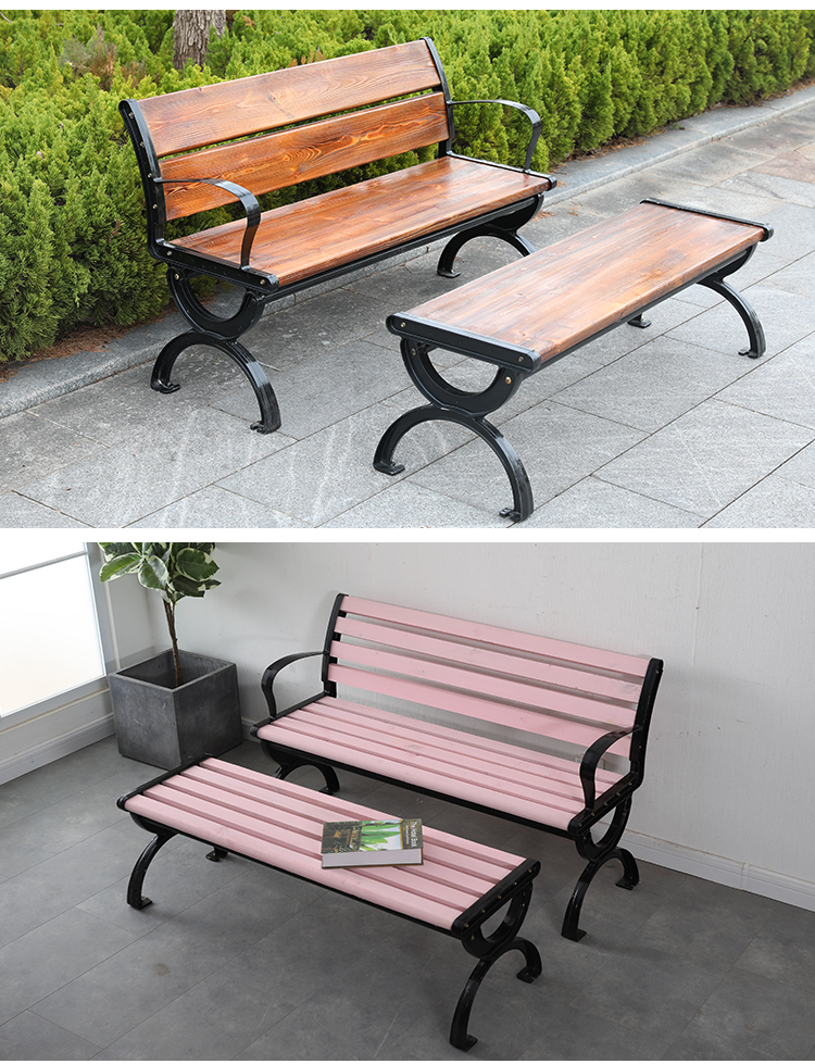 Công viên sắt rèn ngoài trời ghế dài khử trùng gỗ dài ghế thư giãn tựa lưng sân ngoài trời cho ba người ngồi ngoài trời