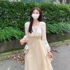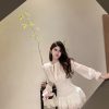 Cộng với kích thước của phụ nữ 2022 mùa hè váy béo mm che bụng để hiển thị ve áo mỏng tay áo ngắn hoạt hình màu kim cương váy thời trang