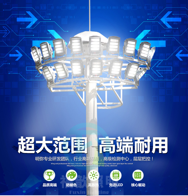 Cột đèn cao loại thang máy 13 mét 15 mét 20 mét 25 mét 30 mét Đèn LED chiếu sáng ngoài trời sân vận động Cột đèn vuông
