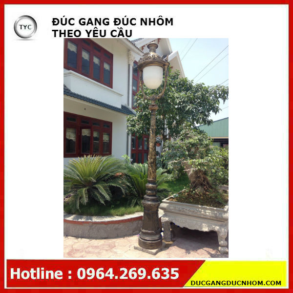 Với kiểu dáng sang trọng, nhìn xa xa như hình bóng của một nữ hoàng rất phù hợp đặt trong một quý gia sang trọng, khuôn viên chung cư cao cấp. Cột đèn với kiểu dáng mềm mại nhưng vô cùng cứng cáp và bên bỉ bởi chất liệu gang. Phủ nhũ màu đồng.