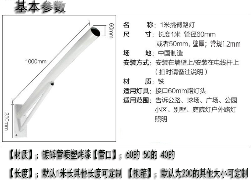 Cột điện ánh sáng đường phố cột thẳng gắp cánh tay 1 m 1,5 m hút tường giữ cột đường nông thôn mới ngoài trời cột đèn tùy chỉnh 2 m