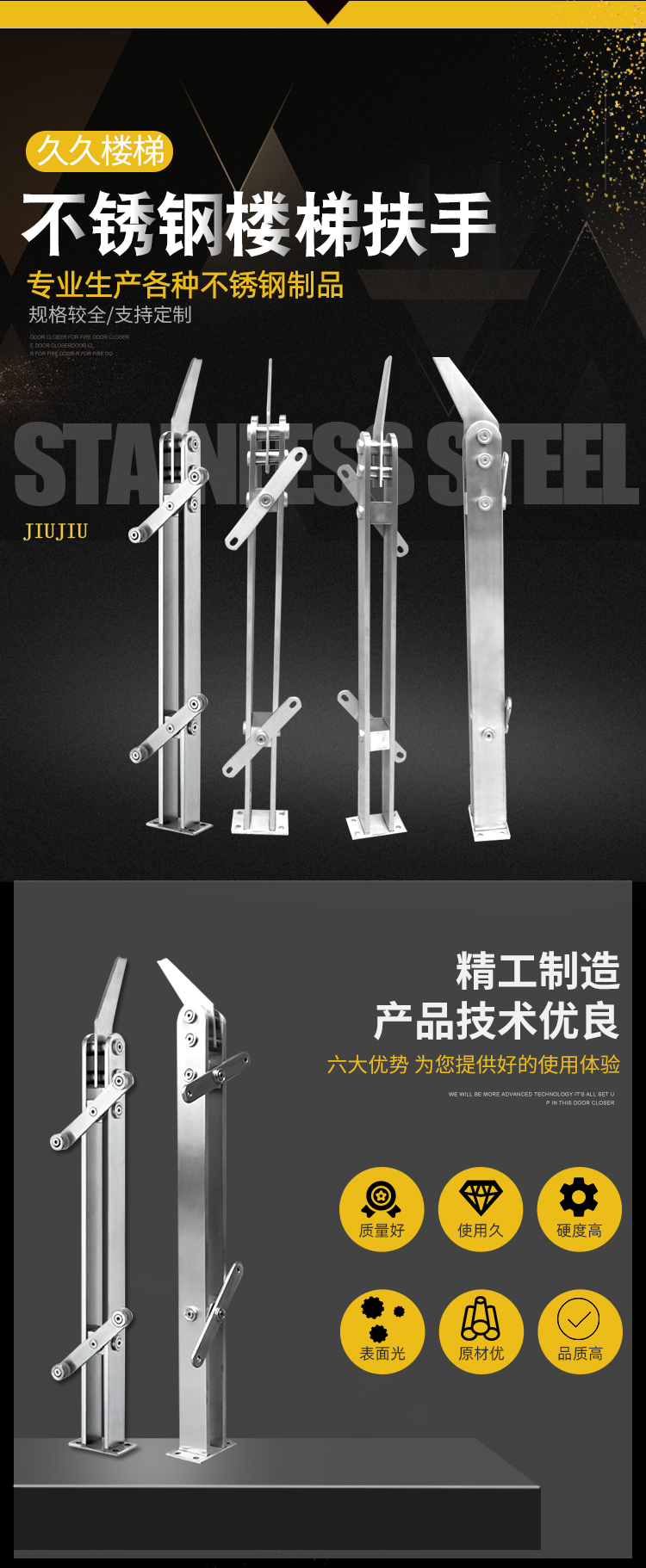 Cột thép không gỉ cầu thang lan can kính lan can kỹ thuật lan can ban công hàng rào tùy chỉnh đầu cắt ống phẳng rỗng