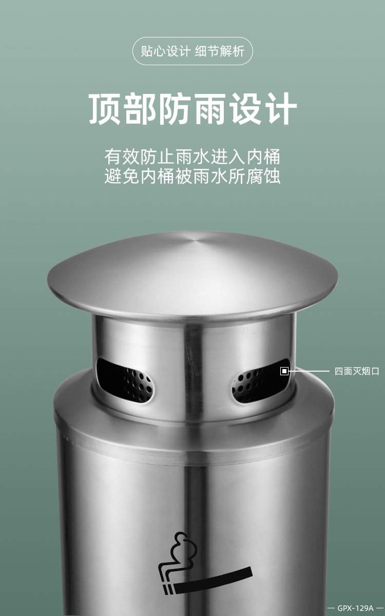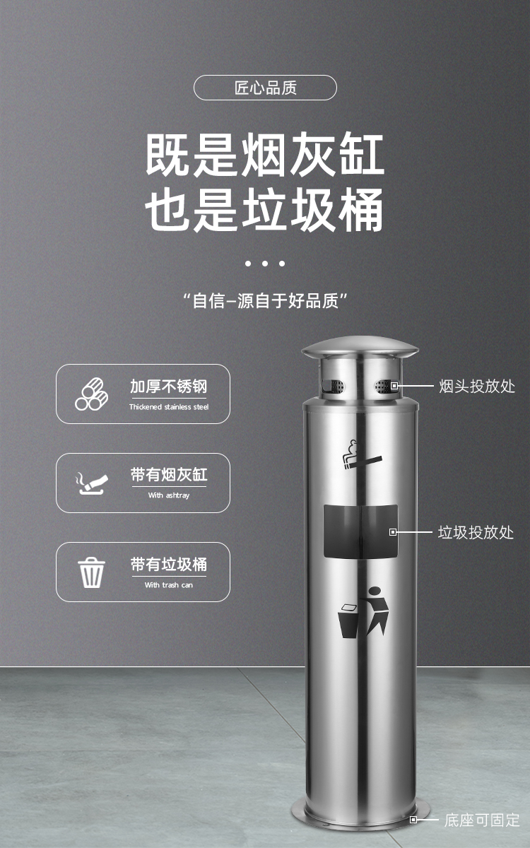 Cột tro bằng thép không gỉ ngoài trời khách sạn trung tâm mua sắm khu vực hút thuốc dập tắt khói thùng rác với gạt tàn thuốc lá dọc thu gom tàn thuốc