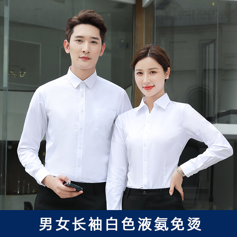 Cotton Amoniac lỏng không cần ủi áo sơ mi nam dài tay cao cấp màu trơn chuyên nghiệp mặc thêu in logo doanh nghiệp áo sơ mi trắng trang trọng