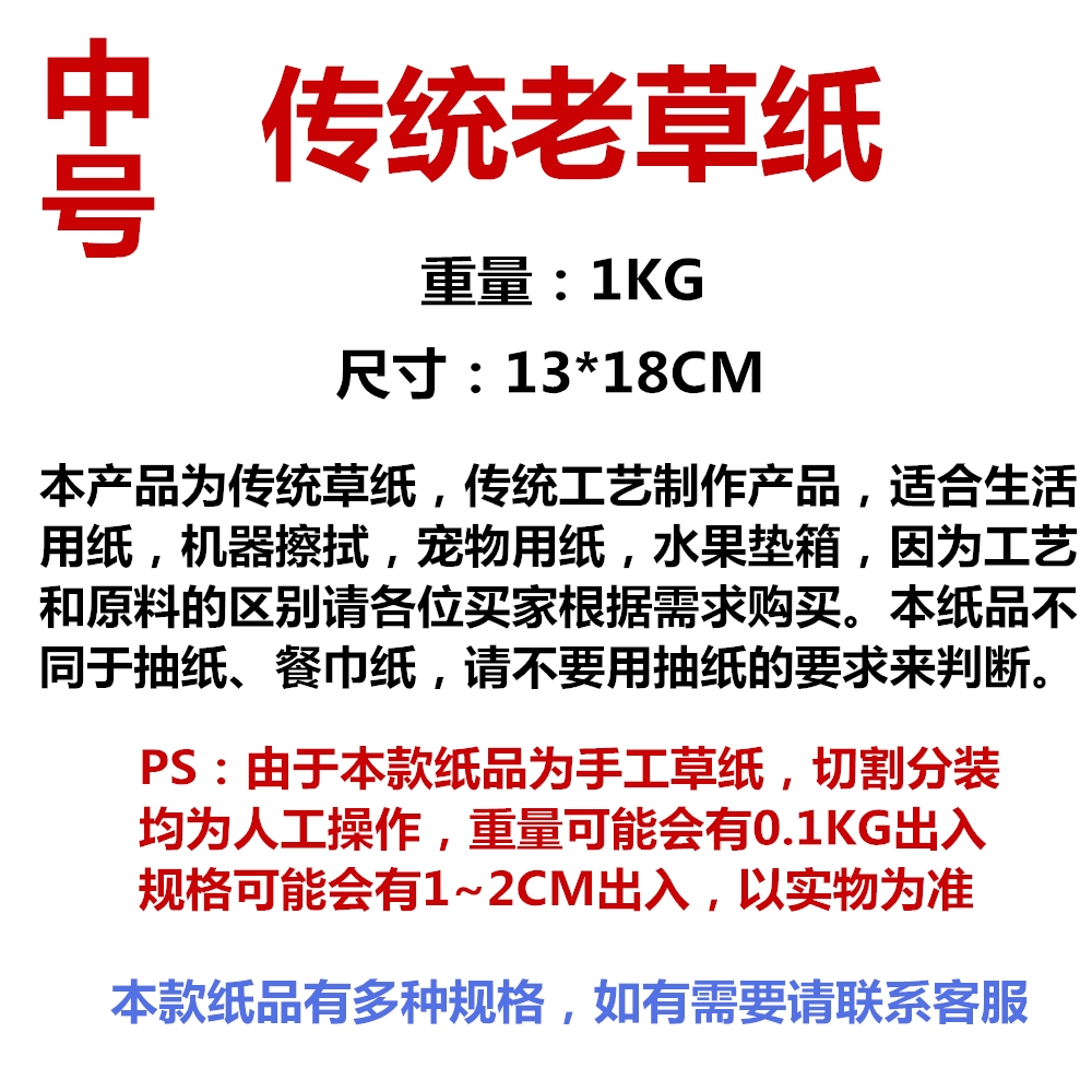 张数和纸的高度,会随纸的皱纹粗细和厚薄不一样而变化,重(±0.1)斤为准,重量都是实重,不排除个别超过0.1范畴,如有缺斤短两,请及时和客服联系,我们愿补差价。