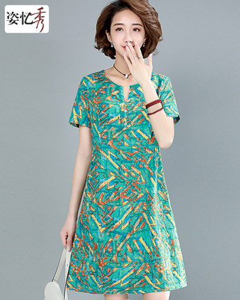 Cư dân khoe váy hoa dài 2019 nữ mới ngắn tay hè hè thon gọn Một chiếc váy thon gọn chữ