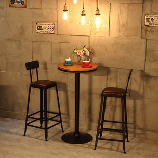 Cửa hàng cà phê gỗ nguyên khối của Mỹ Bàn ghế ăn kết hợp quán trà sữa Bàn ghế sắt cổ điển đơn giản Cửa hàng đồ uống Bàn tròn nhỏ