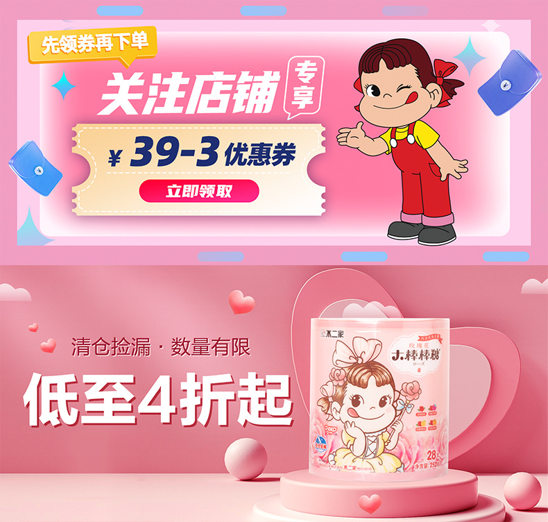 Cửa hàng hàng đầu chính thức của Fujiya Kẹo mút 60 thùng cô gái quà tặng đồ ăn nhẹ kẹo lưới trẻ em màu đỏ