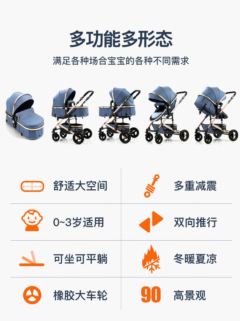 Cửa hàng hàng đầu chính thức Goodbaby Xe đẩy trẻ em đèn cảnh quan cao có thể ngồi và nằm gấp trẻ sơ sinh hai chiều hấp thụ sốc