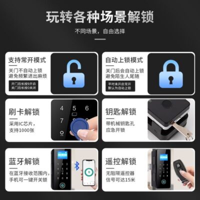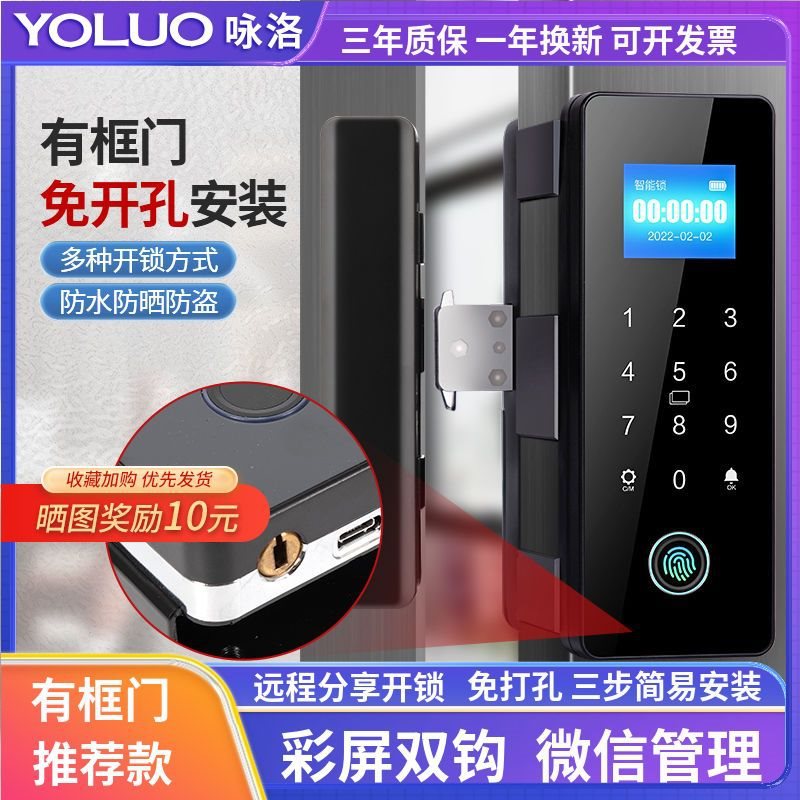 Cửa kính đóng khung khóa vân tay miễn phí mở cửa đôi khóa điện tử KFC khóa mã cửa mở đôi cửa hàng khóa thông minh