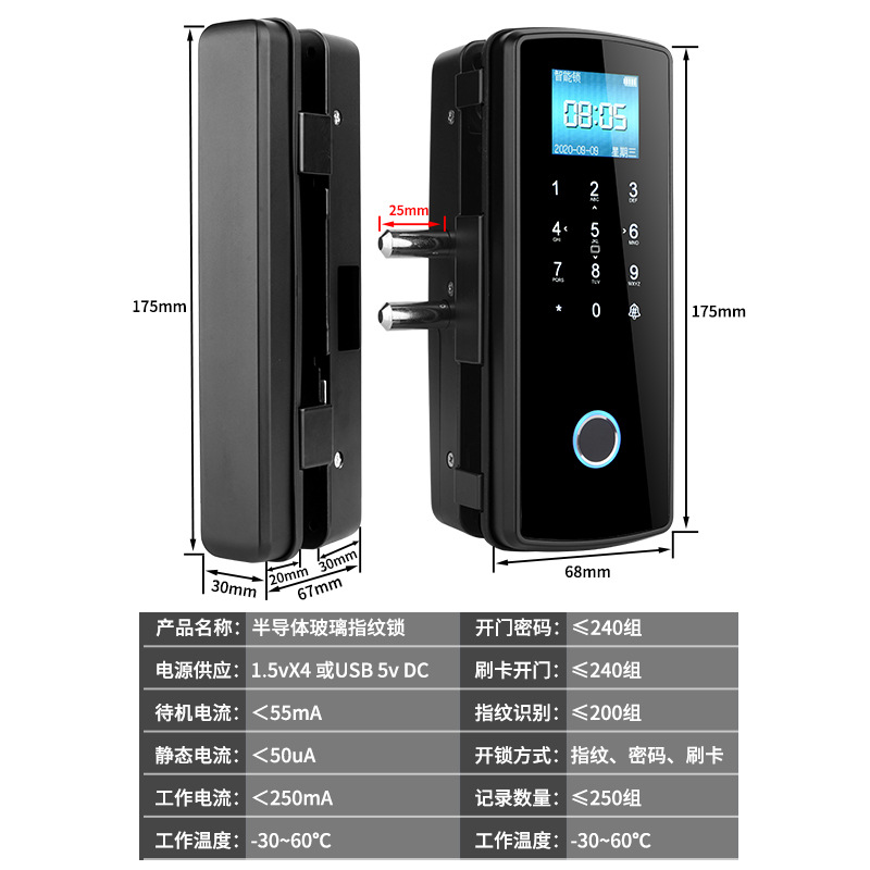 Cửa kính khóa vân tay văn phòng cửa đôi miễn phí nối dây miễn phí tháo gỡ điện tử thông minh mật khẩu điều khiển từ xa trung điều khiển truy cập khóa