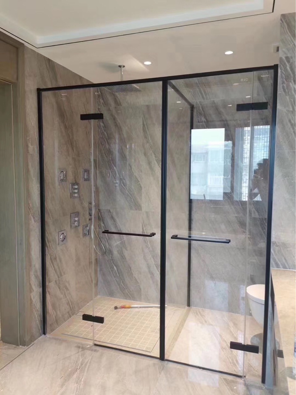 Cửa kính không khung phòng tắm kẹp đen đúc chính xác 304 thép không gỉ dải bản lề tắm kính kẹp phụ kiện