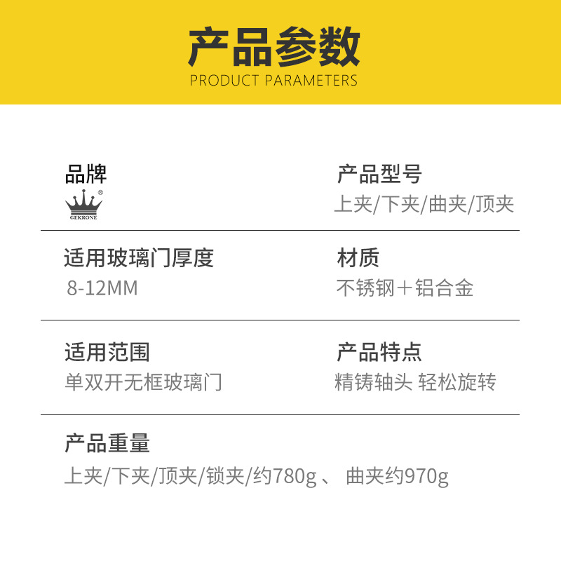 Cửa kính lên xuống kẹp kẹp đầu kẹp khóa kẹp đầu trục tấm nhà sản xuất bán buôn lò xo mặt đất phụ kiện không khung inox