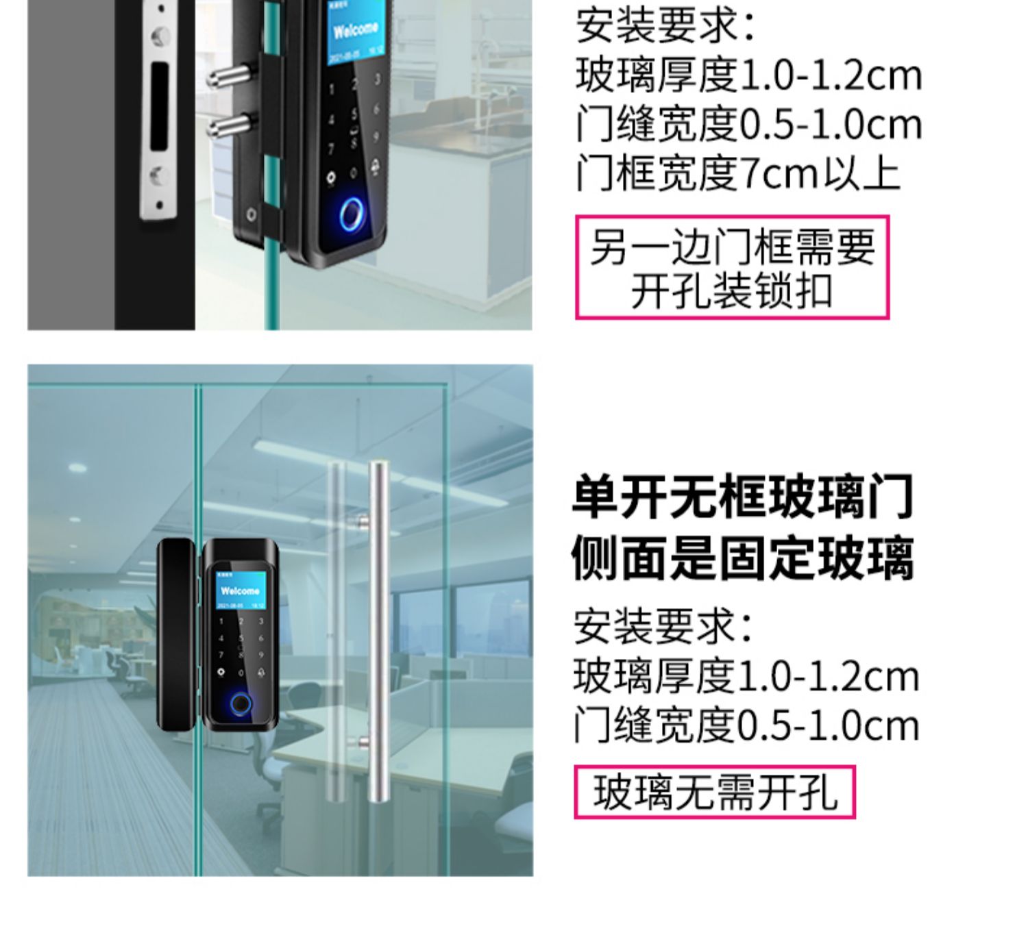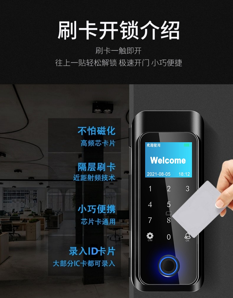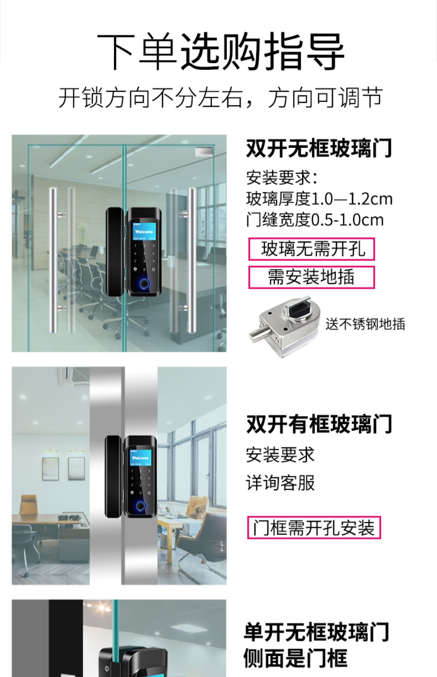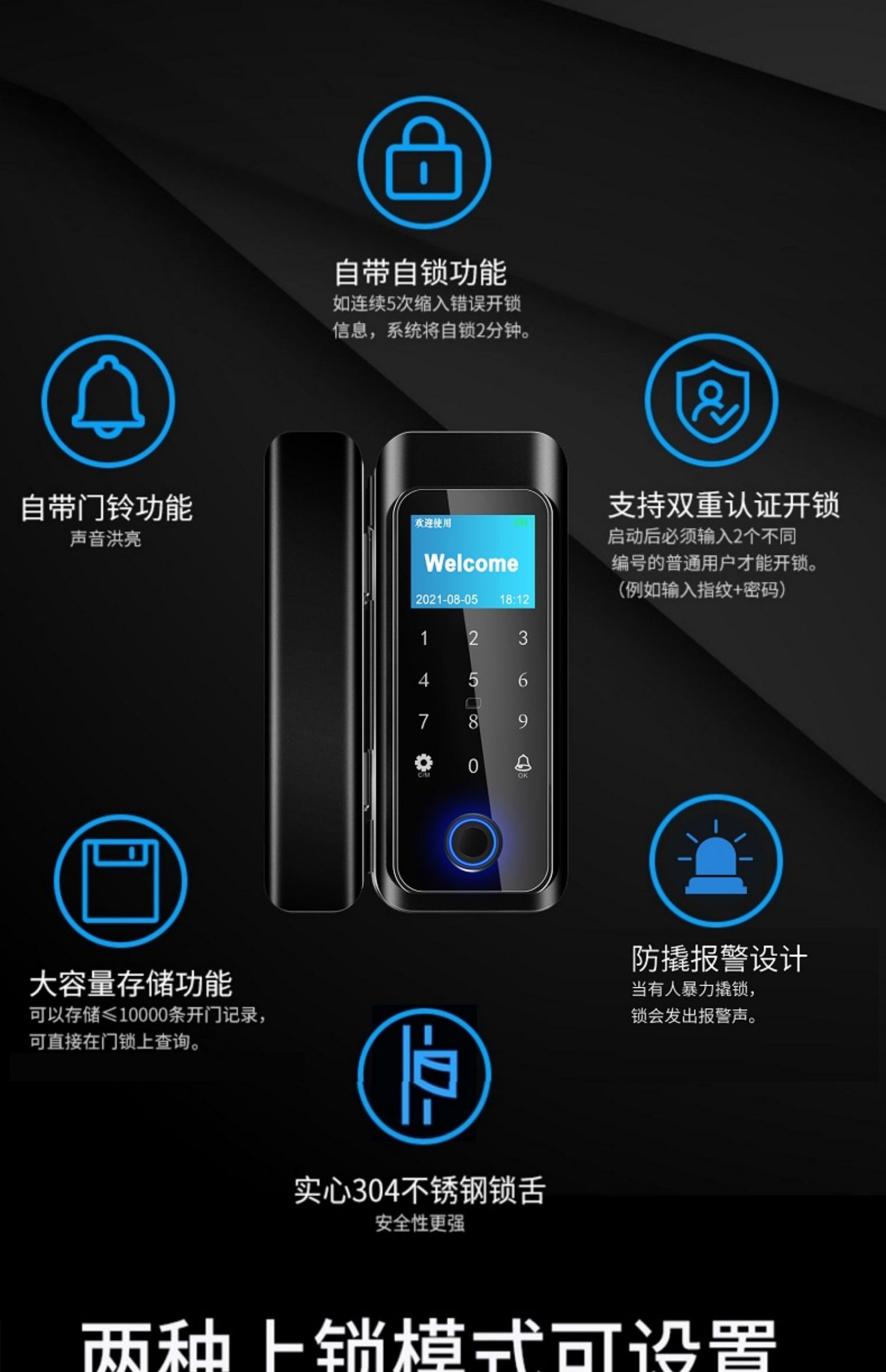 Cửa Kính Ngoài Trời Khóa Vân Tay Chống Thấm Nước Tự Do Mở Đôi Cửa Văn Phòng Kết Hợp Khóa Đóng Khung Cửa Khóa Thông Minh Chống Mưa