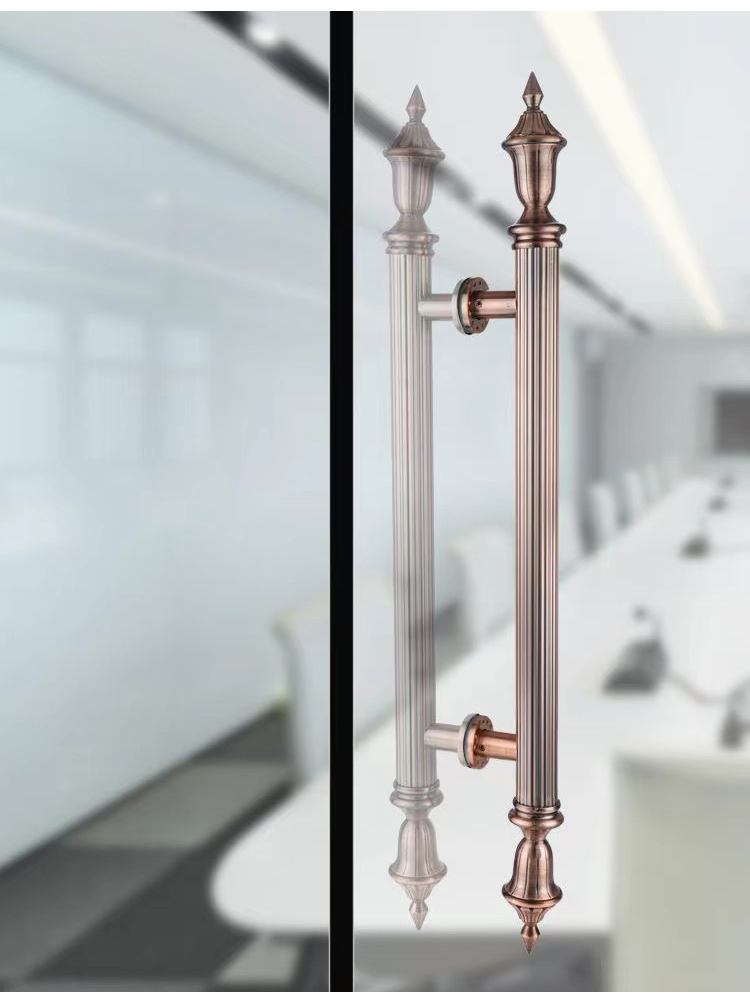 Cửa kính tay nắm cửa gỗ phong cách Châu Âu cổ cửa không khung thép không gỉ dày sang trọng khách sạn KTV tay nắm cửa