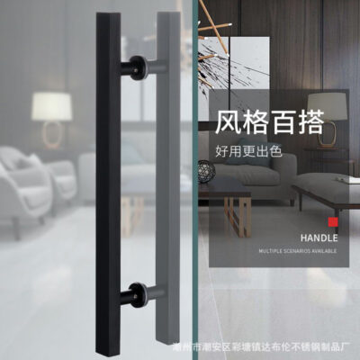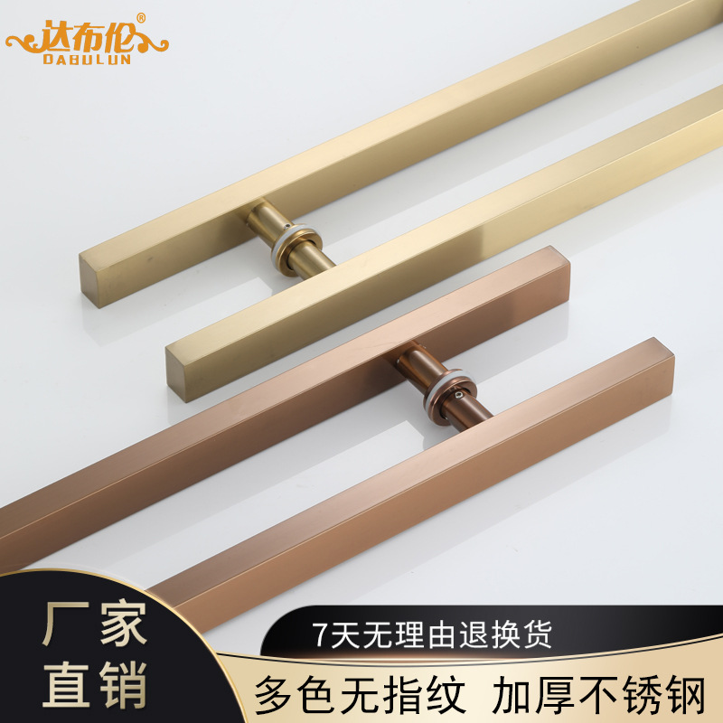 Cửa kính thép không gỉ dày tay cầm ống vuông cửa khách sạn cửa gỗ thép không gỉ màu đen hoa hồng vàng tay nắm cửa