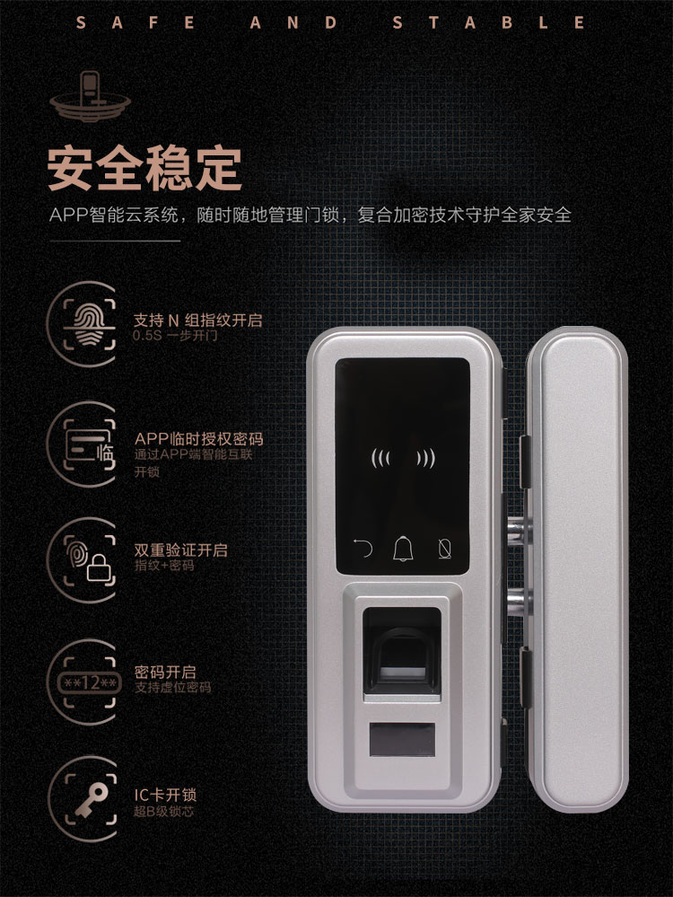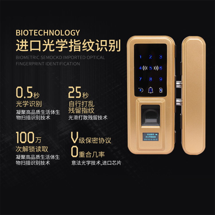 Cửa kính văn phòng không có lỗ khóa vân tay mở đơn mở đôi mở cửa đôi đóng khung khóa mật khẩu cửa đơn kiểm soát truy cập khóa điện tử