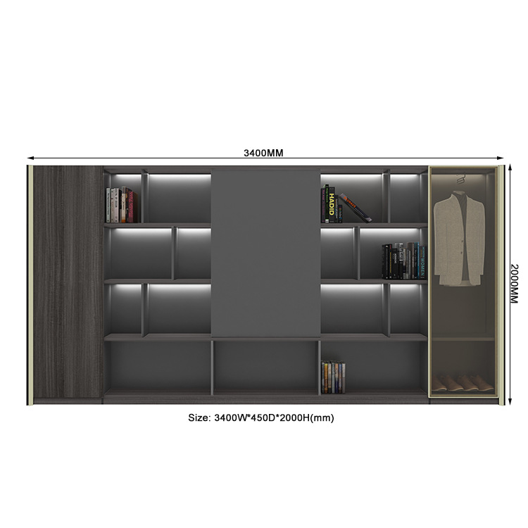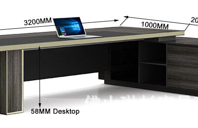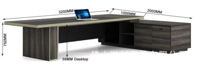采用E1级环保MFC板材,台面为2.0mm封边,台面为58mm厚度,深度为1000mm,颜色为米兰深木+灰色平纹 _x000D_ 板+灰色,采用双色封边工艺,香槟钛金质感,木纹拼花处理,台面配黑色拉丝铝合金滑盖多功能插座,副柜抽屉配密码锁, _x000D_ |