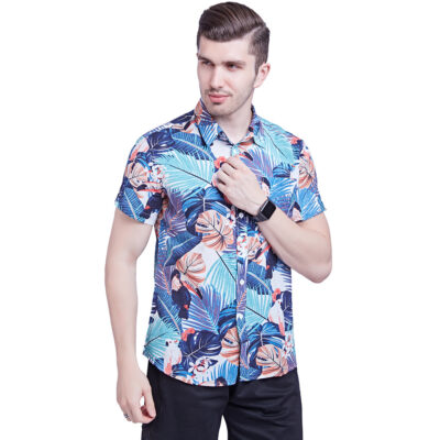 Cung cấp ngoại thương xuất khẩu nam kích thước Hoa Kỳ cotton Tencel in hình Hawaii áo sơ mi ngắn tay ngắn tay