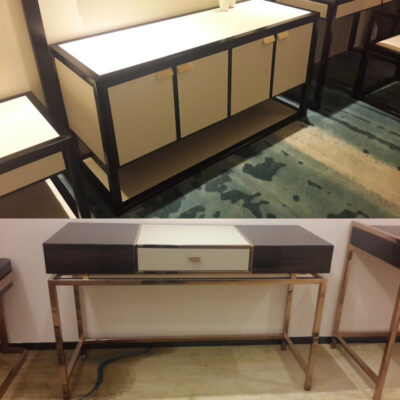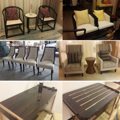 本公司主营产品:客房家具,酒店大堂公共区域家具,公寓会所、别墅家具,餐厅、咖啡厅 家具及KTV康乐场所家具为主打产品, 涵盖酒店客房、大堂公共区,全日制餐厅,中餐厅, 豪华商务套房,标准套房,总统套房,会议办公,KTV,桑拿洗浴家具等,单品包括床屏, 床架、床垫、床头柜、妆台、妆椅、妆镜、休闲椅、茶几、写字台、写字椅、电视柜,行李 柜,衣柜、床尾凳、花台、玄关台、装饰柜、装饰镜、屏风、沙发、贵妃椅、餐椅,以及门连门套、天花板、护墙板、实木线条、地角线等固装家具。我公司在家具涂装,实木家具工艺、板式家具工艺、 软体家具工艺、雕刻、贴金银箔等工艺方面有独到的造诣,欢迎广大新老客户来电,来函,亲临工厂/展厅指导,洽谈业务。