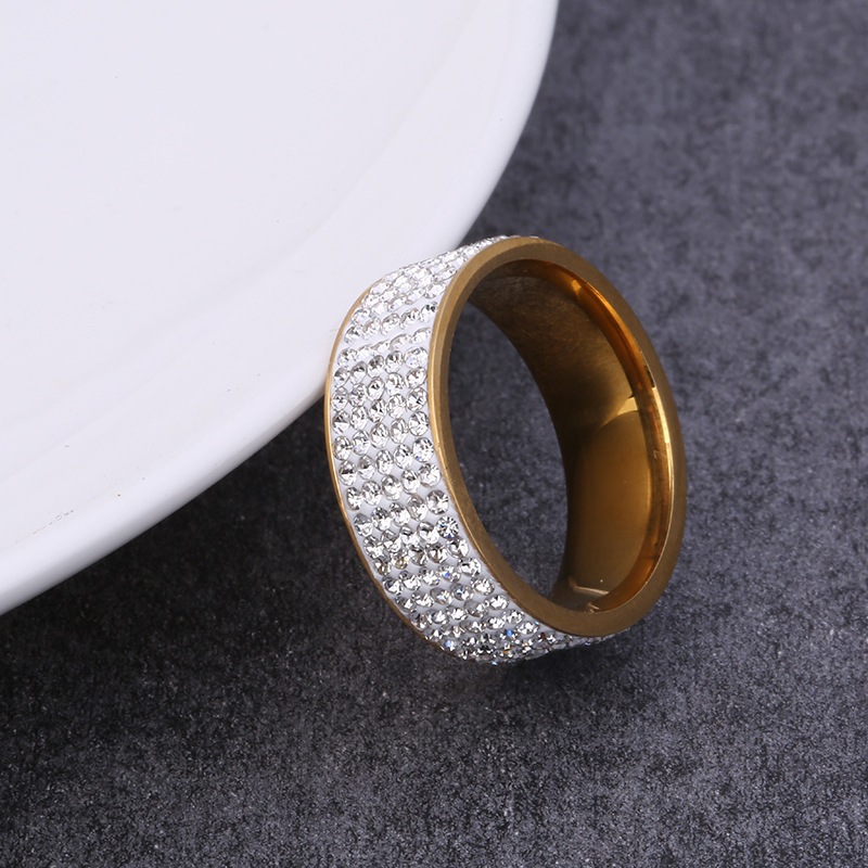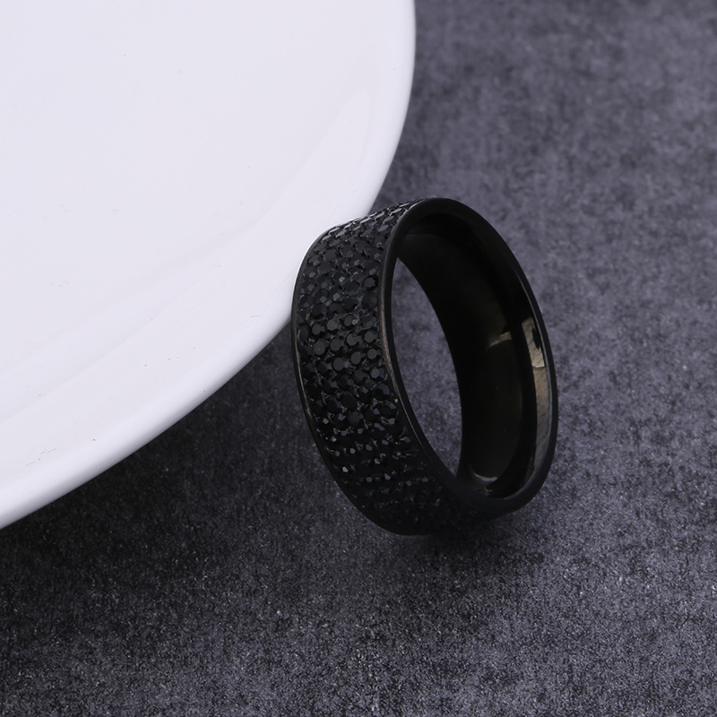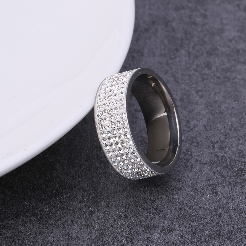 Cung cấp quốc tế đồ trang sức bằng thép không gỉ phong cách châu Âu và Mỹ đất sét gốm mềm năm hàng kim cương khảm cặp đôi kim cương nhà sản xuất nhẫn thép titan