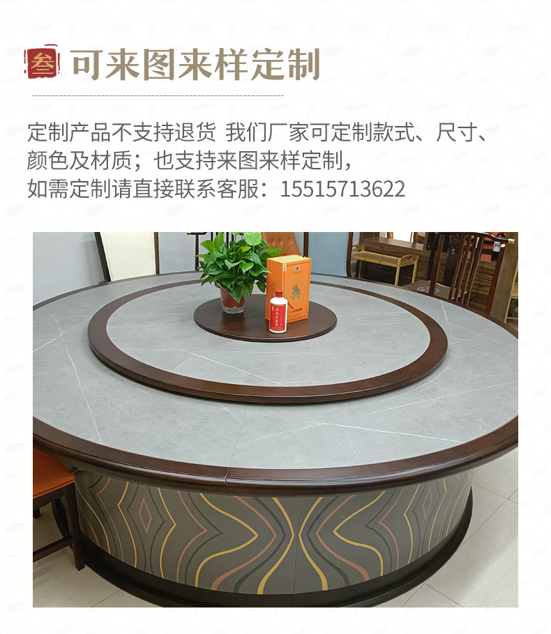 Cung cấp trực tiếp từ nhà máy đến các khách sạn, nhà hàng, câu lạc bộ bàn xoay tự động, bàn ăn xoay tự động đá phiến Trung Quốc mới, bàn tròn lớn, bàn ăn thương mại