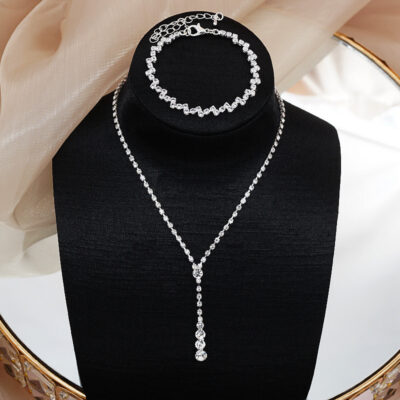 Cung Cấp Xuyên Biên Giới Bán Chạy Nhất Pha Lê Trang Sức Vòng Cổ Cưới Cô Dâu Bông Tai Vòng Cổ Vòng Tay Bộ 3 Cho Nữ