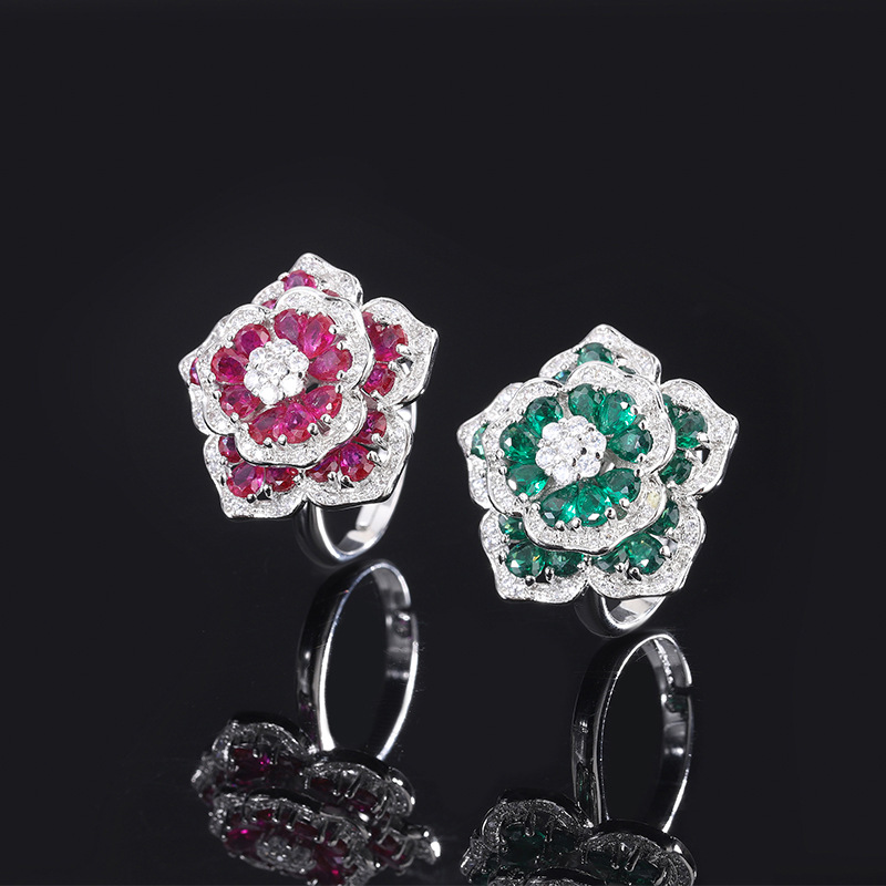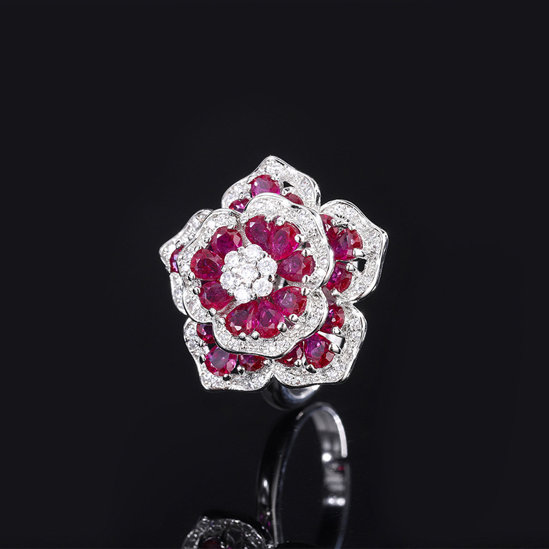 Cung cấp xuyên biên giới nhẫn kim cương vi điểm mới quý phái Âu Mỹ topaz máu chim bồ câu hồng ngọc điều chỉnh nhẫn nữ