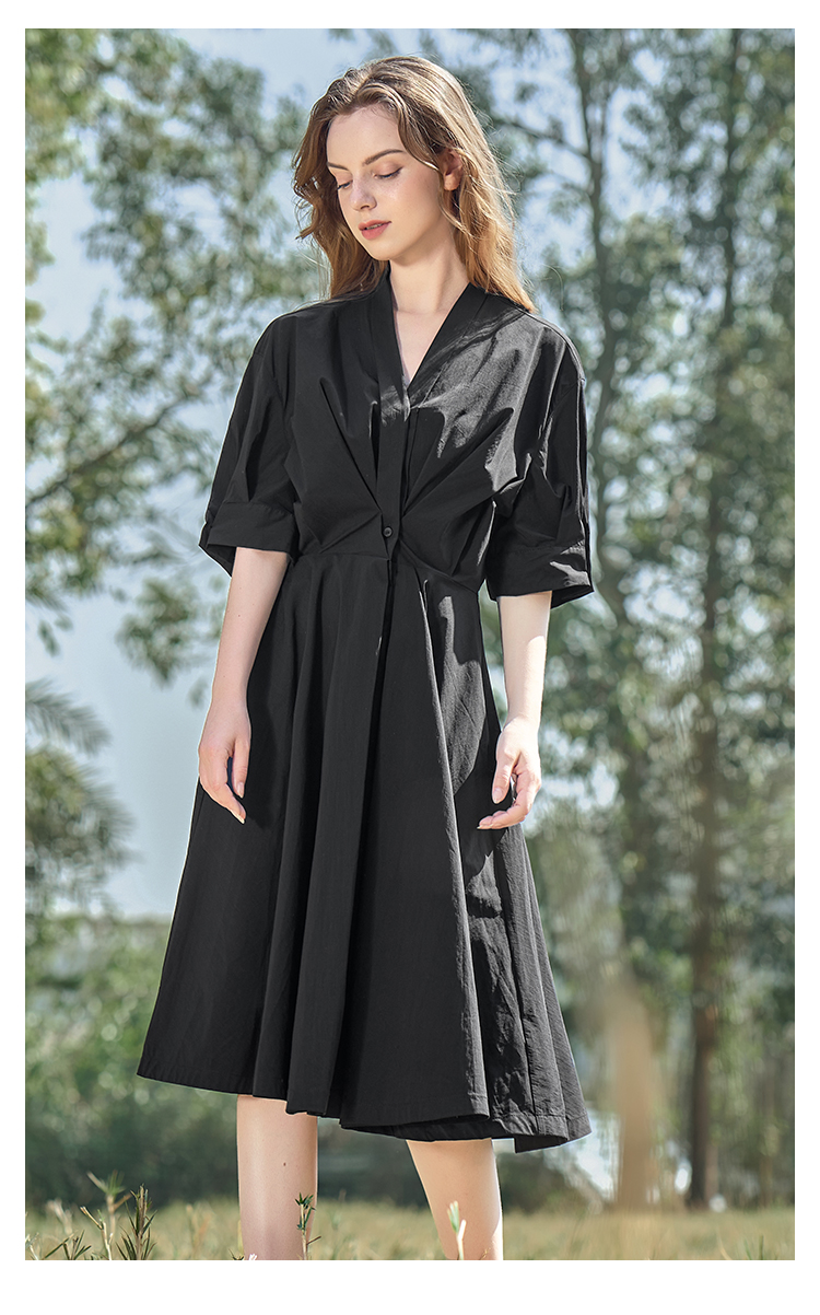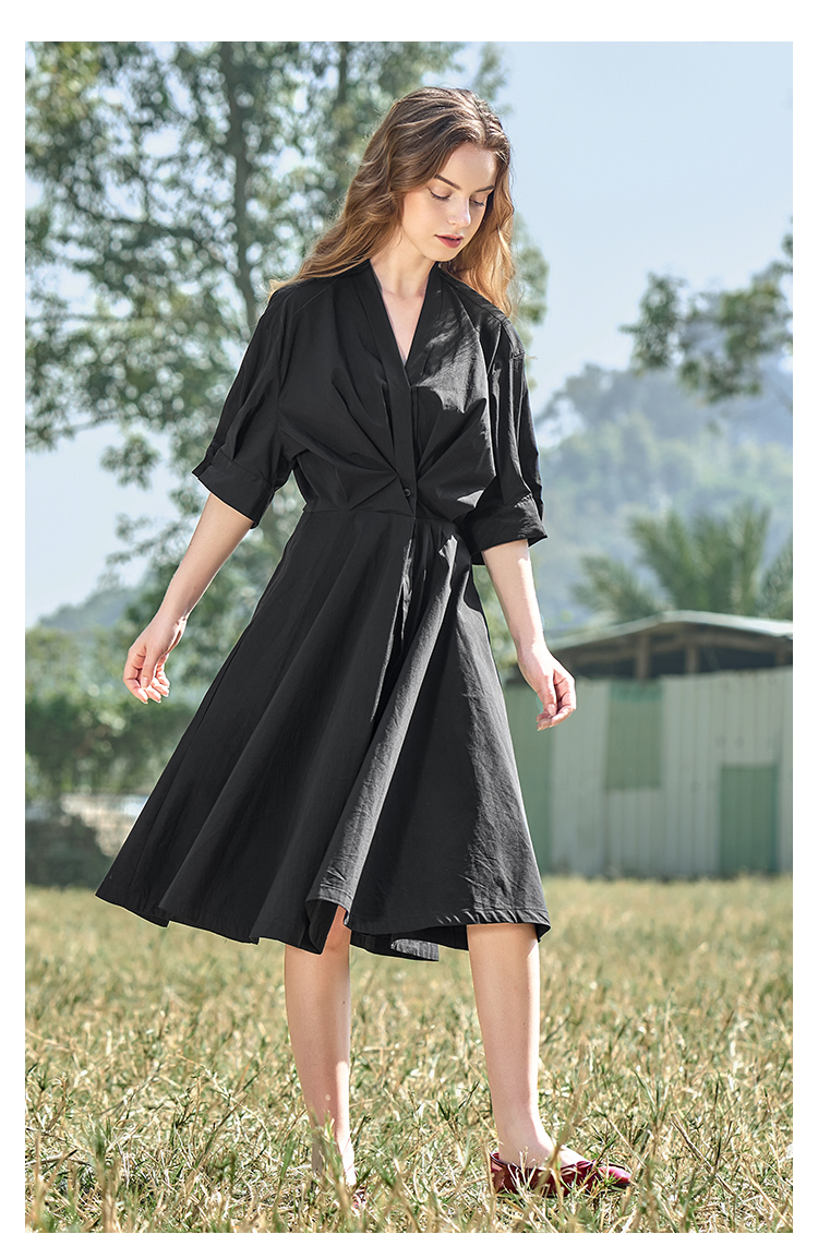 [Cùng phong cách trong cửa hàng] GOFAR phác thảo váy nữ Hepburn phong cách nhỏ váy đen tính khí váy eo 30601