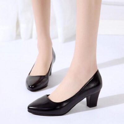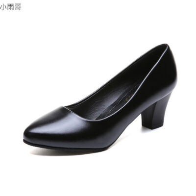 Cuộc phỏng vấn chính thức gót trung bình giày công sở của phụ nữ giày da màu đen chuyên nghiệp mũi nhọn gót dày làm việc nghi thức miệng nông giày cao gót đơn