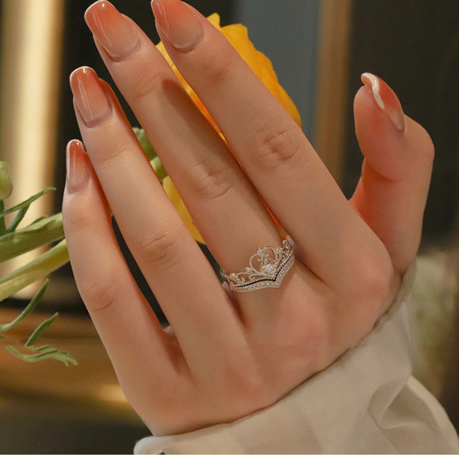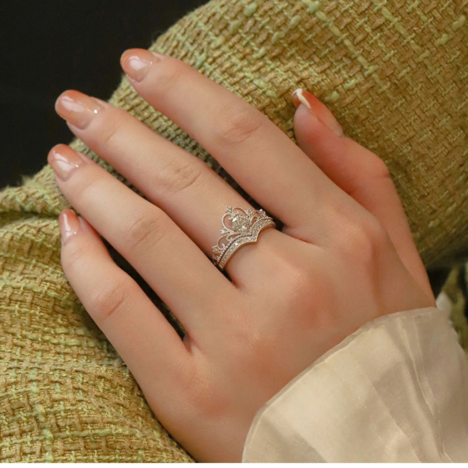 Cuốn Sách Nhỏ Màu Đỏ Với Công Chúa Nhẫn Kim Cương Nhẫn Cưới Giả Moissanite Nhẫn Nữ Ngách Thiết Kế Ánh Sáng Sang Trọng Bán Buôn