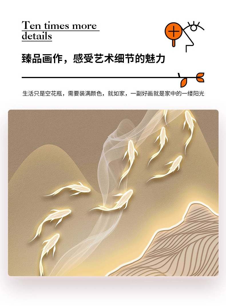 Cửu ngư hình lối vào lối vào tranh trang trí đèn tròn sang trọng cao cấp có đèn led nhà hàng tranh tường hành lang lối đi treo tranh