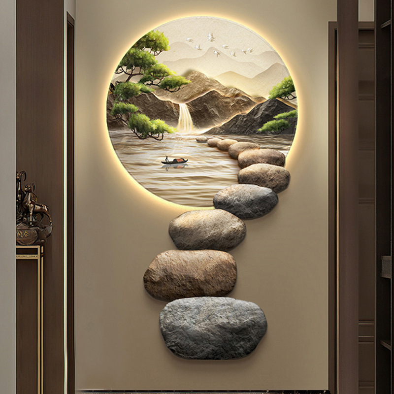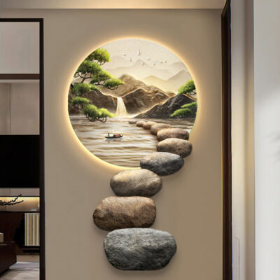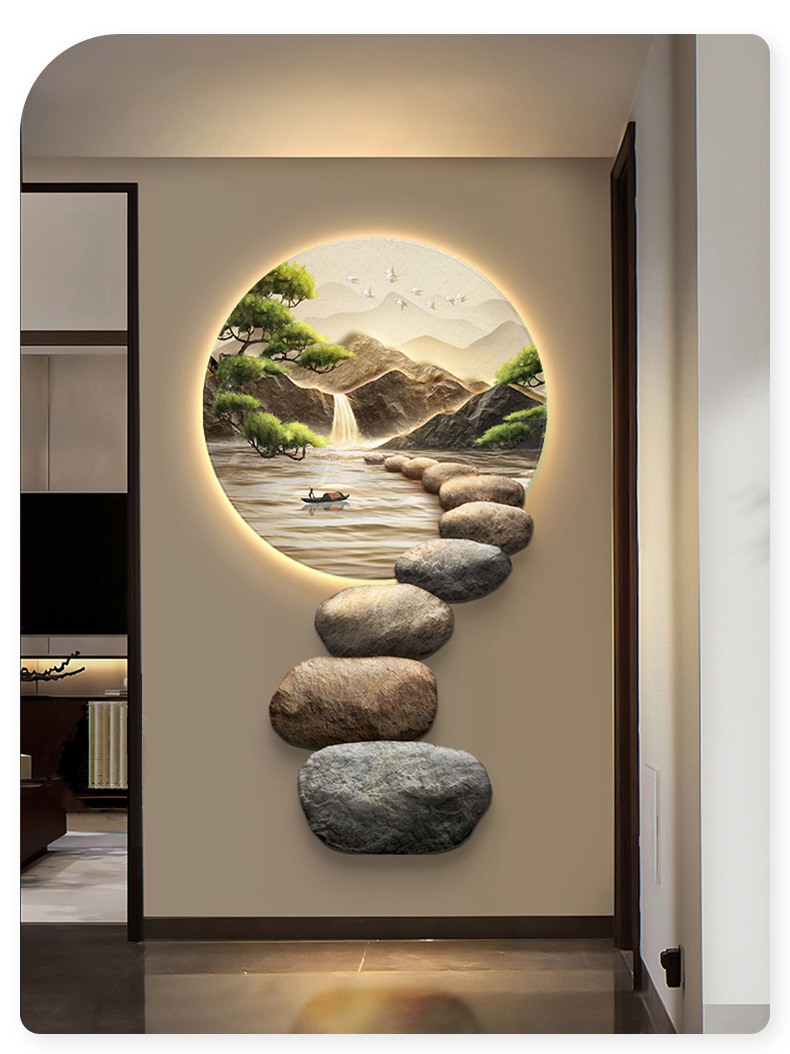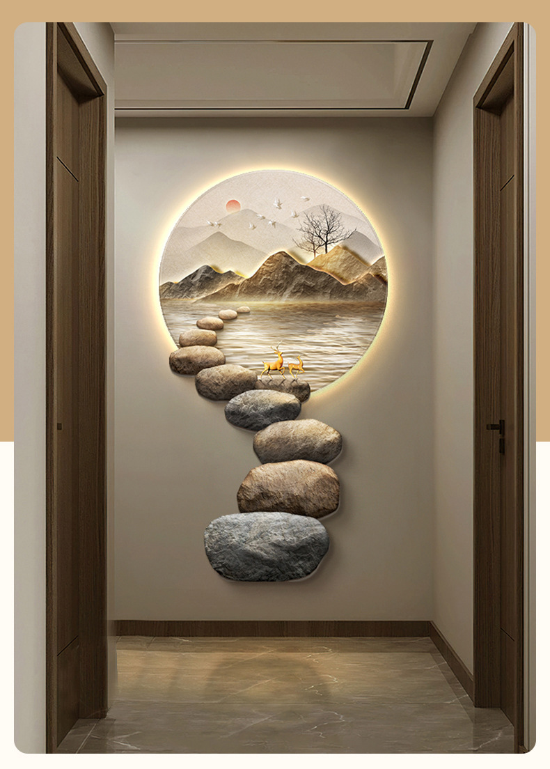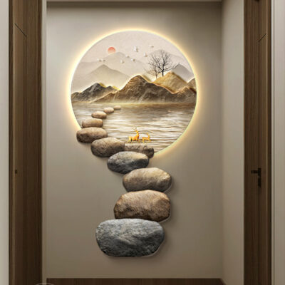 Đá chạy hiên nhà tranh trang trí ánh sáng hiện đại sang trọng tranh đèn tường cửa ra vào cảm giác cao cấp khi treo tranh cuối hành lang lối đi