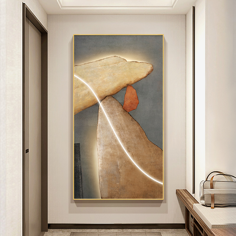 Đá chạy hiên tranh trang trí ánh sáng hiện đại sang trọng lối vào cửa ảo treo tranh trừu tượng tài lộc ý nghĩa tốt bức tranh tường