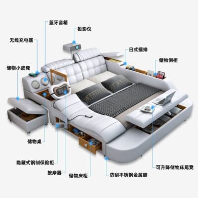 Đa chức năng massage thông minh tất nam giường giường da hiện đại tối giản máy chiếu phòng ngủ chính 1.8m giường đôi