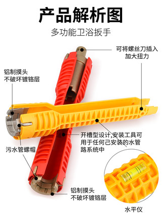 - 颜色分类: 单头水槽扳手 单头水槽扳手+卫浴扳手+螺丝刀+生料带 双头水槽扳手 双头水槽扳手+卫浴扳手+螺丝刀+生料带 升级款八合一水槽扳手 升级款八合一水槽扳手+卫浴扳手+螺丝刀+生料带 黑色龙头卫浴扳手(带水平)