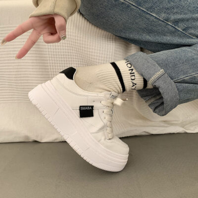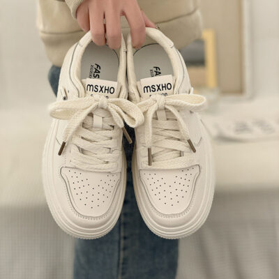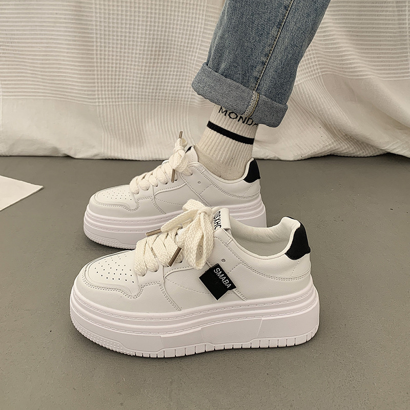 Da Mềm Giày Trắng Nữ Mùa Xuân 2023 Giày Nữ Mới Trắng Giày Đáy Dày Tăng Nhỏ Giày Thường