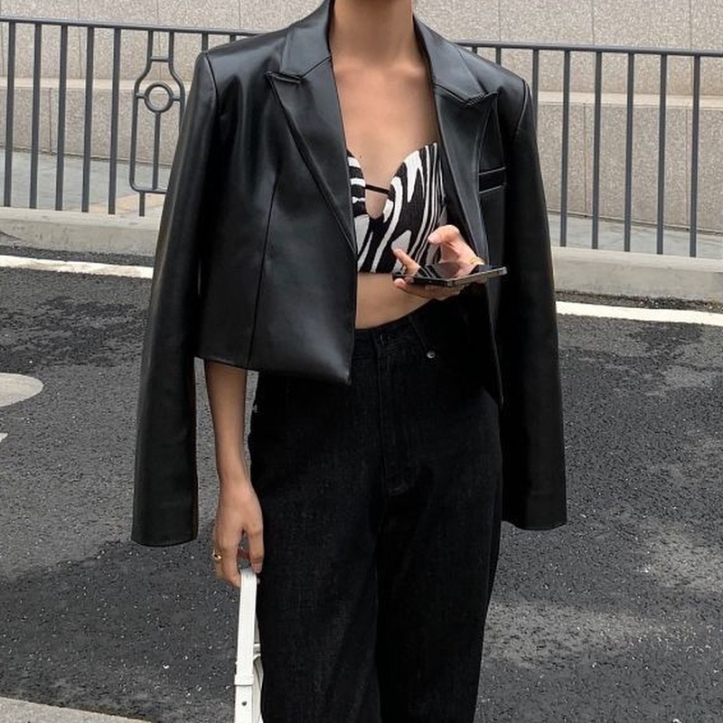 Da Ngắn Mùa Xuân 2023 Màu Đen Cao Cấp Nhỏ Áo Khoác Nữ Fried Street Thiết Kế Áo Khoác Thời Trang Nhà Máy Bán Hàng Trực Tiếp
