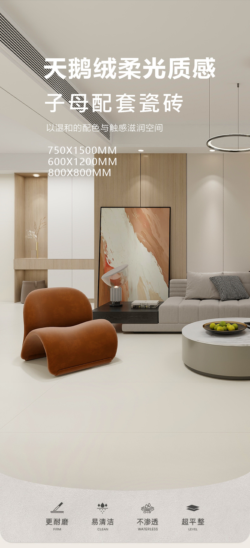 Da nhung tráng men ánh sáng dịu nhẹ gạch gạch kem lát sàn phòng khách wabi-sabi màu trơn vi xi măng lát sàn gạch ốp tường