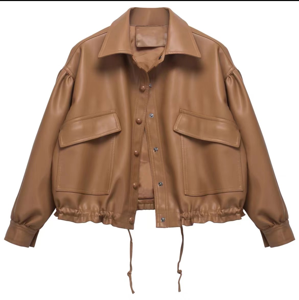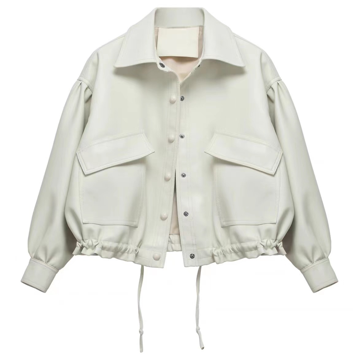 Da nữ mùa xuân và mùa thu 2023 mới nhỏ retro thiết kế đơn giản rời cảm giác áo khoác ngắn áo khoác xe máy