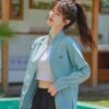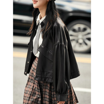 Da nữ mùa xuân và mùa thu 2023 mới nhỏ retro thiết kế đơn giản rời cảm giác áo khoác ngắn áo khoác xe máy