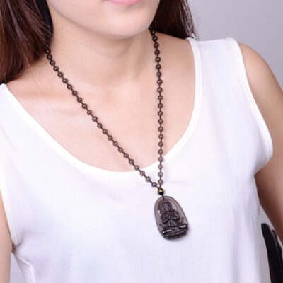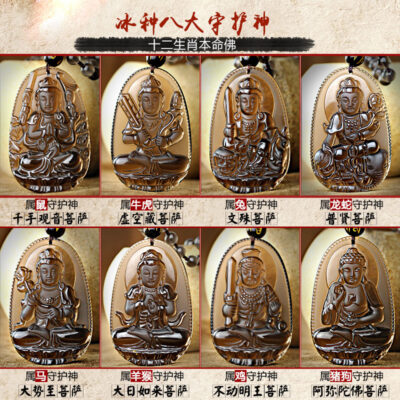 Đá pha lê giả obsidian tám vị thánh bảo trợ 12 cung hoàng đạo giáng sinh Phật trà pha lê nam nữ mặt dây chuyền thời trang